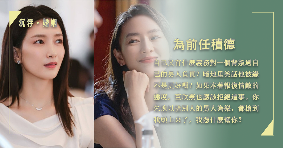 如果本著報復敵態度,董欣燕也應該拒絕事。朱瑰以搶別男為,都搶到,憑什麼幫?